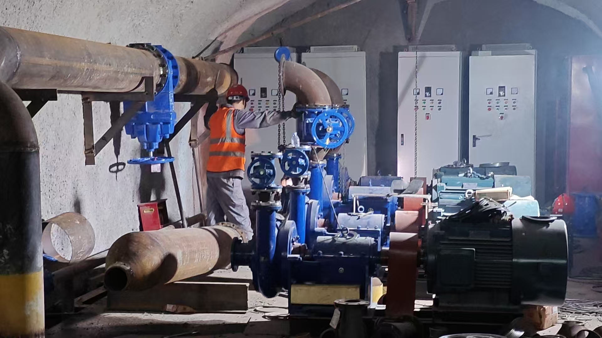 根據鐵路隧道的工程進度,第三批主排水泵已進場完畢,立即投入緊張的安裝工作。第三批主排水泵清水泵功率為90KW 4臺,污水泵功率為75KW 4臺,共計8臺,為不耽誤工程整體進度,安裝工作設備進場立即開始,預計將按期完成安裝工作,在端午節后開始調試。